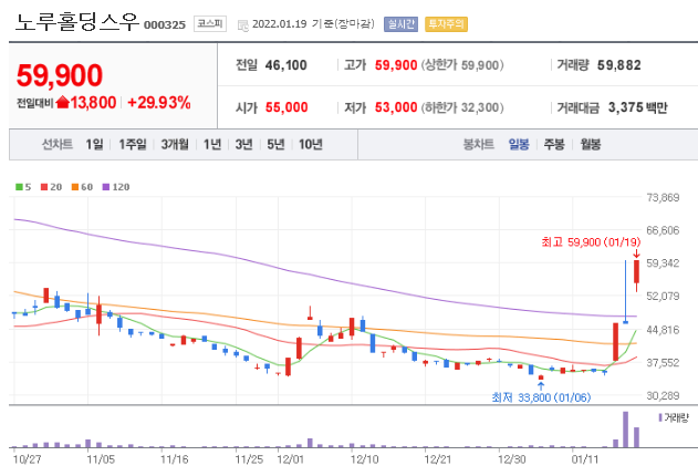 2022년 1월 19일 노루홀딩스우가 상한가를 기록하였습니다. 주요 이슈와 앞으로 노루홀딩스 주가 전망에 대해 알아보도록 하겠습니다.