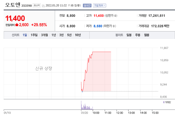 신규 상장주로 당일 상한가에 도달하였습니다. 자동차 생활 플랫폼 기업으로 재무는 현재까지는 적자입니다.
