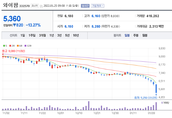 작년 7월 주가 신규상장이후 주가는 지속적인 하락세를 보이고 있습니다.