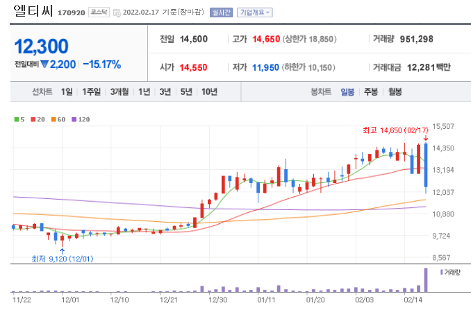 현재 주가는 12,300원이며 52주 최고가는 15,500원, 최저가는 9,120원입니다.